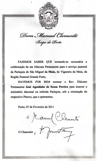 nomeado pelo Bispo do Porto, D. Manuel Clemente, em Fevereiro de 2011.