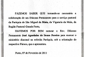 No fim dum percurso formativo enriquecedor, o Diácono Pereira foi colocado na Paróquia da Maia (por ter sido esta,